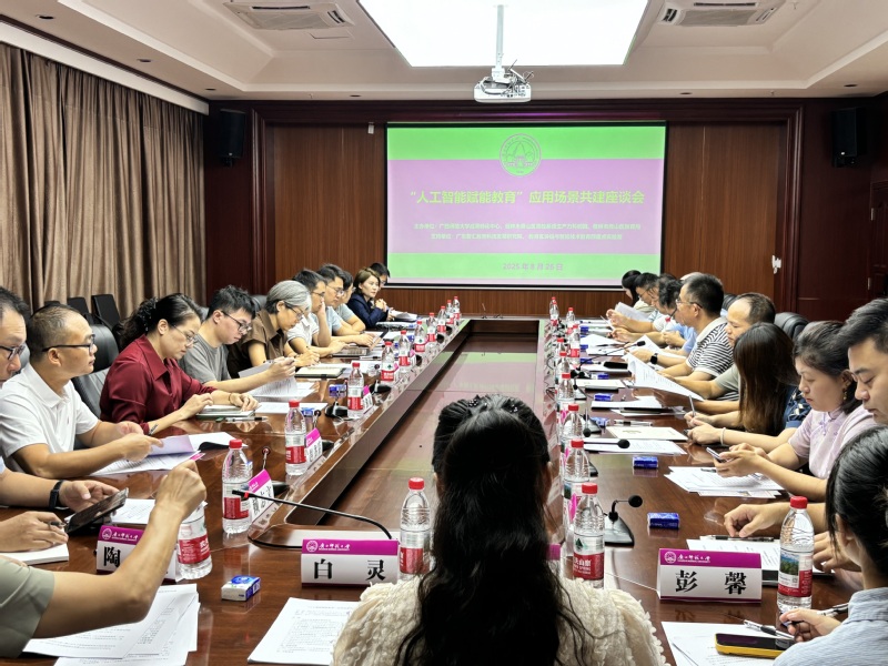 8月26日,为深入贯彻落实《广西推进人工智能赋能教育行动方案(2025-2027年)》部署,我校在育才校区国际交流中心211会议室成功举办“人工智能赋能教育”应用场景共建座谈会。本次座谈会由我校成果转化中心联合广东智汇教育科技发展研究院、桂林雁山区高校新质生产力科创园主办。桂林雁山区教育局、科创园,广东拓思软件科学园有限公司、广州乐庚信息科技有限公司、广西心研科技有限公司、桂林博童教育科技有限公司,以及我校创新创业学院、人工智能学院、美术学院、教育区块链与智能技术教育部重点实验室、南宁校友会、附属金雁学校、实验幼儿园等领导、专家及企业家,20多人参加了座谈会。
